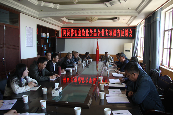 随后在集团公司三楼会议室召开雅布赖工业集中区所有企业参加的“阿拉善盟危险化学品企业专项检查反馈会”。会上,检查组就查出的问题进行反馈,并提出几点意见和要求:一是要切实提高思想认识,认真履行属地监管部门的安全监管职责和企业主体责任。二是要意识到当前安全生产形式的严峻性和紧迫性,严格落实“管行业必须管安全、管业务必须管安全、管生产经营必须管安全”,确保我盟危险学品企业的生产安全。