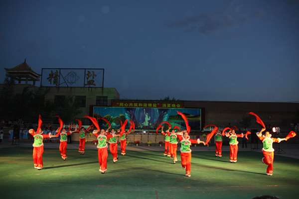 82晚,公司职工文化广场载歌载舞,热闹非凡,沉浸在欢乐的海洋里,由集团公司工会、团委举办的“同心共筑和谐雅盐”消夏广场文艺晚会隆重上演,成为炎炎夏夜的一道靓丽风景。